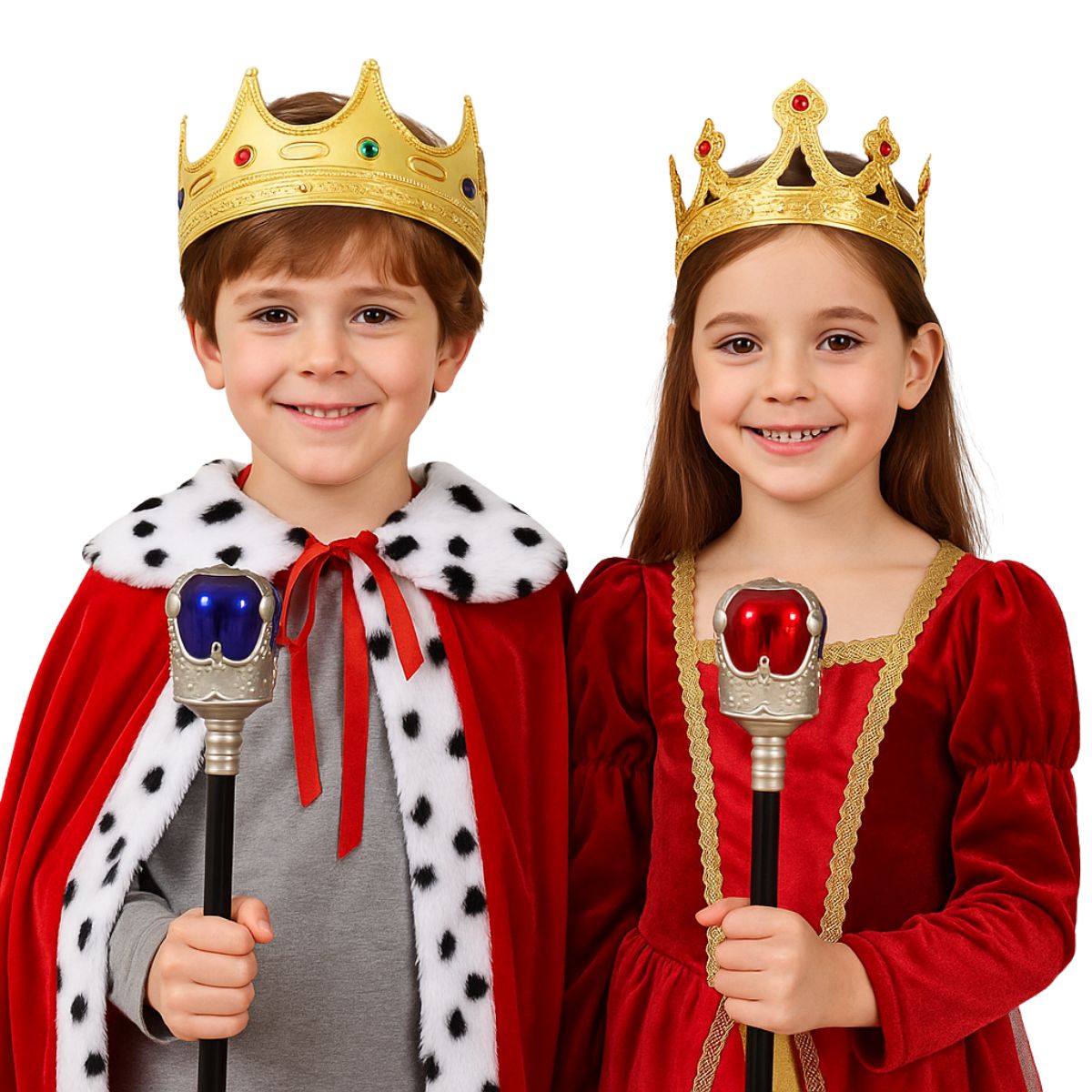 Perfecto para disfraces de reyes y reinas, presentaciones escolares, celebraciones temáticas medievales o juegos de fantasía en casa.